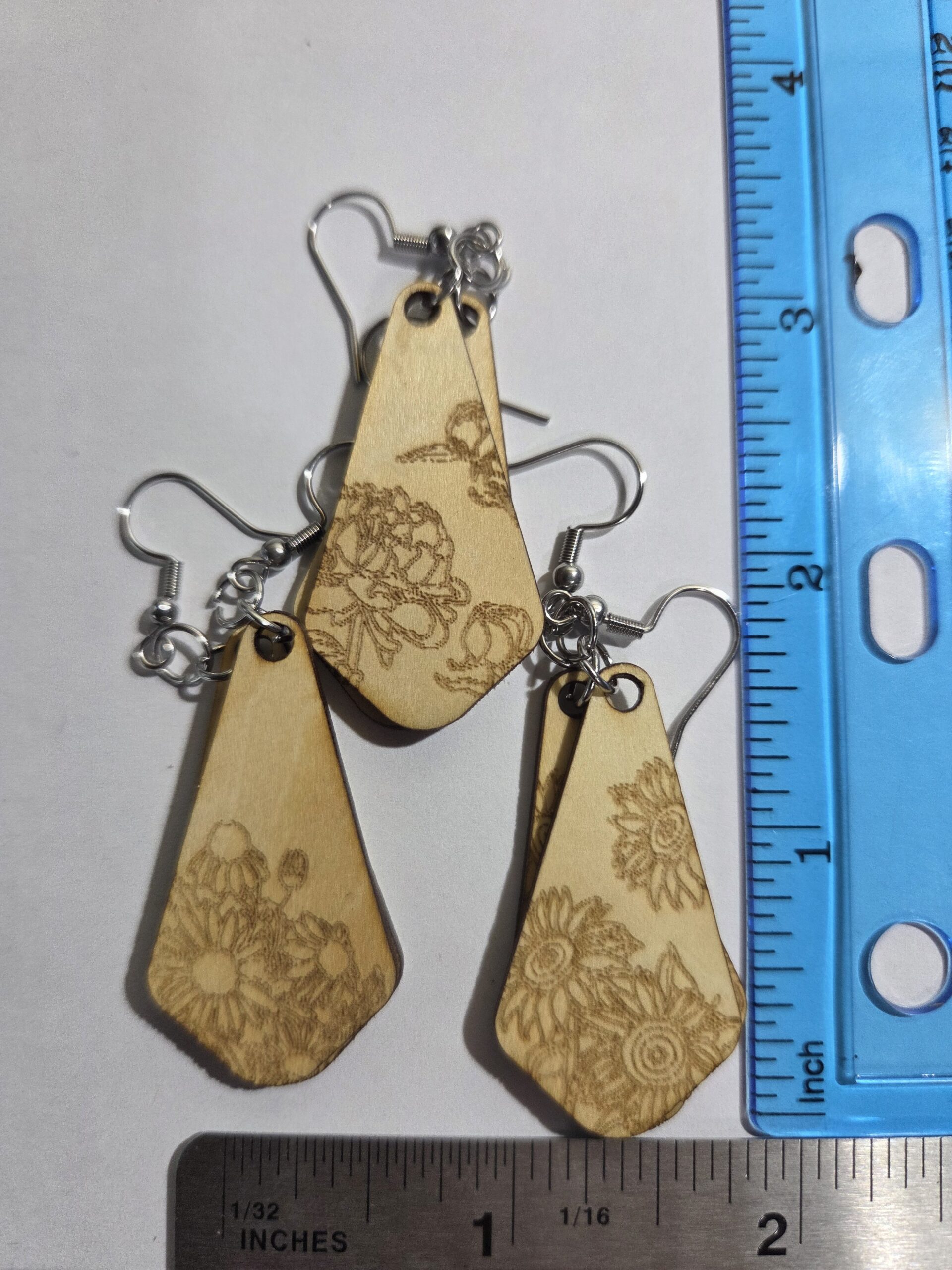 2 inch x 4 inch floral earring. You get 3 pair for the the price of one.