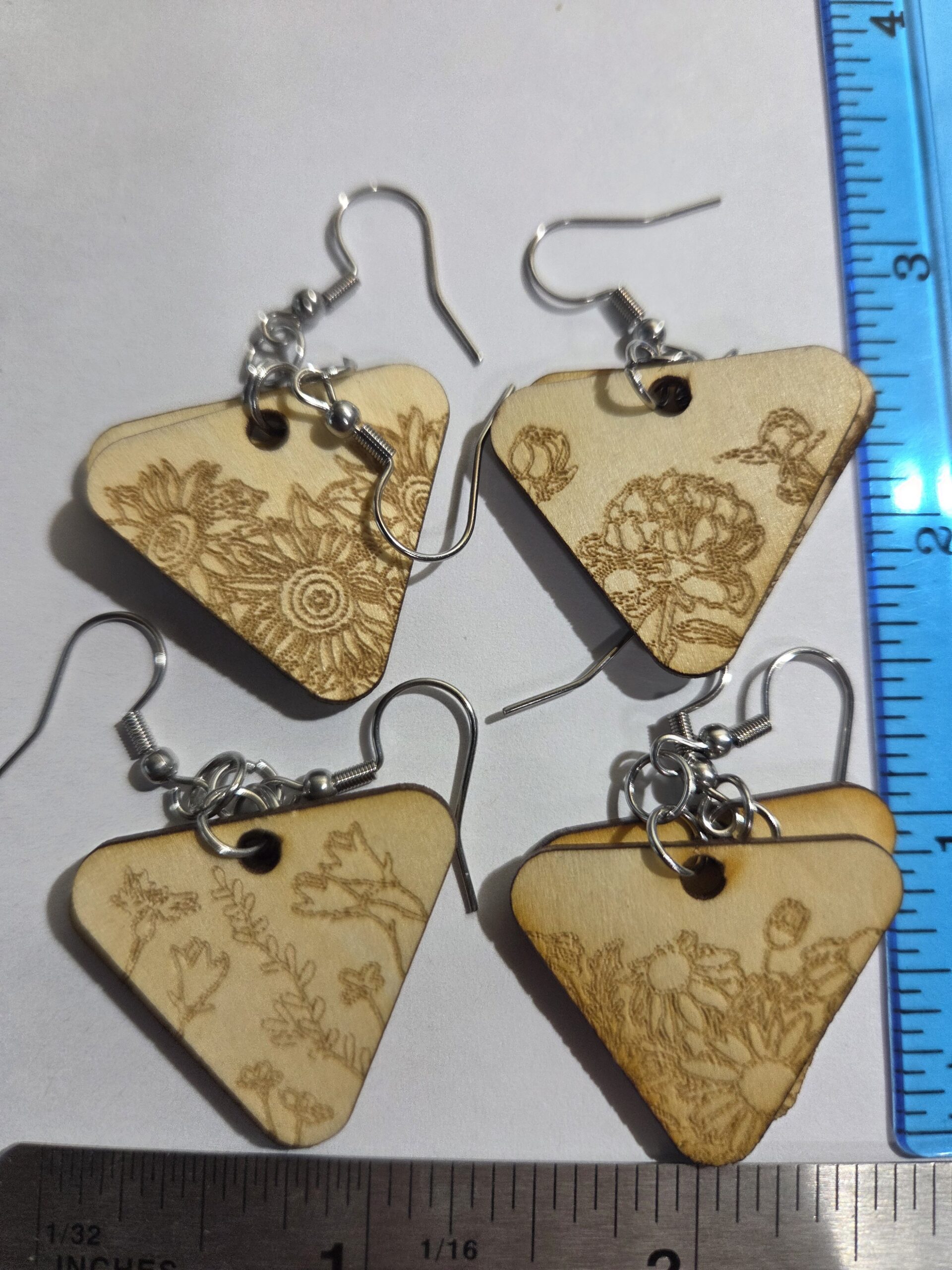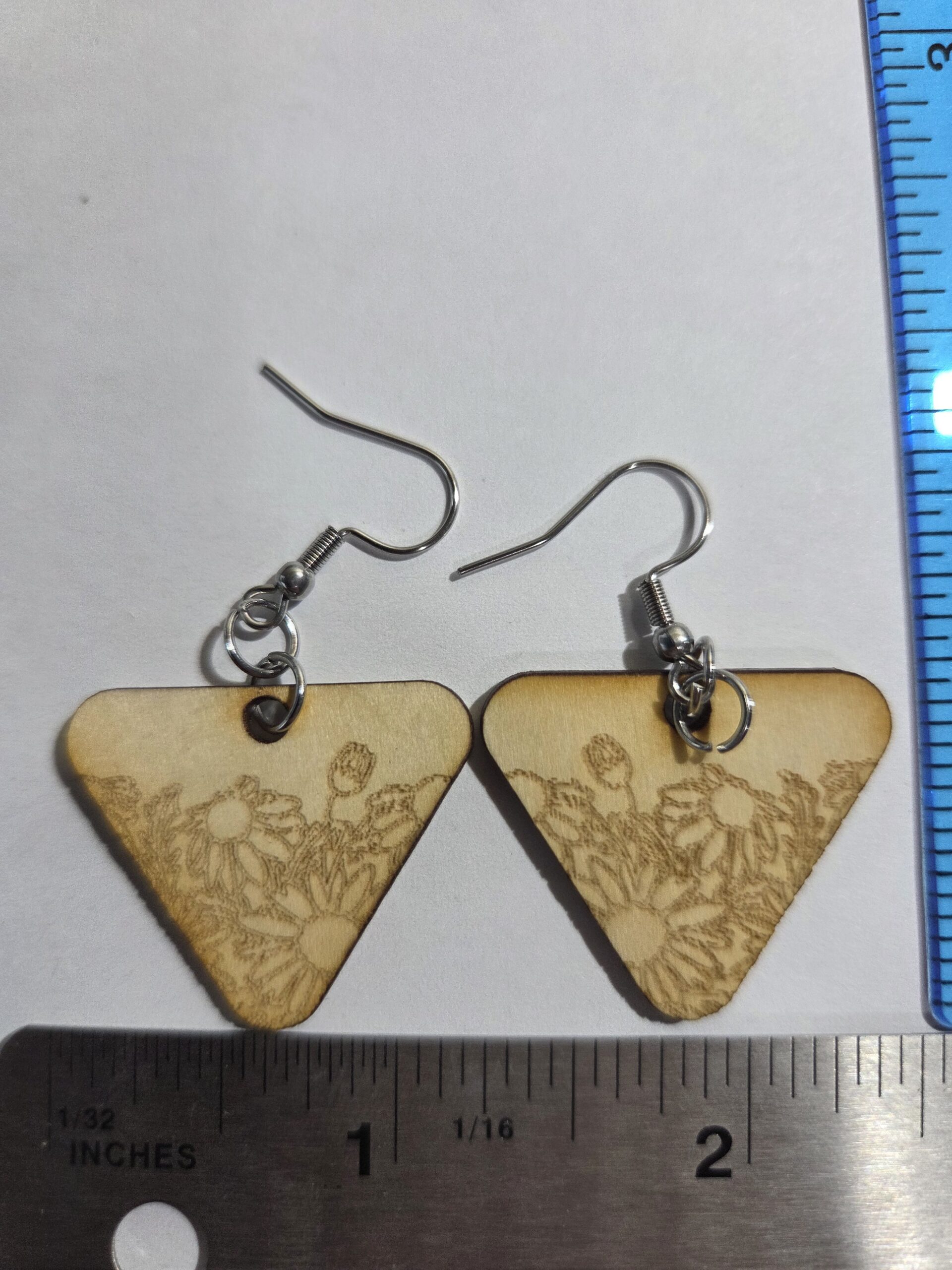 2 inch x 4 inch floral earring. You get 3 pair for the the price of one.