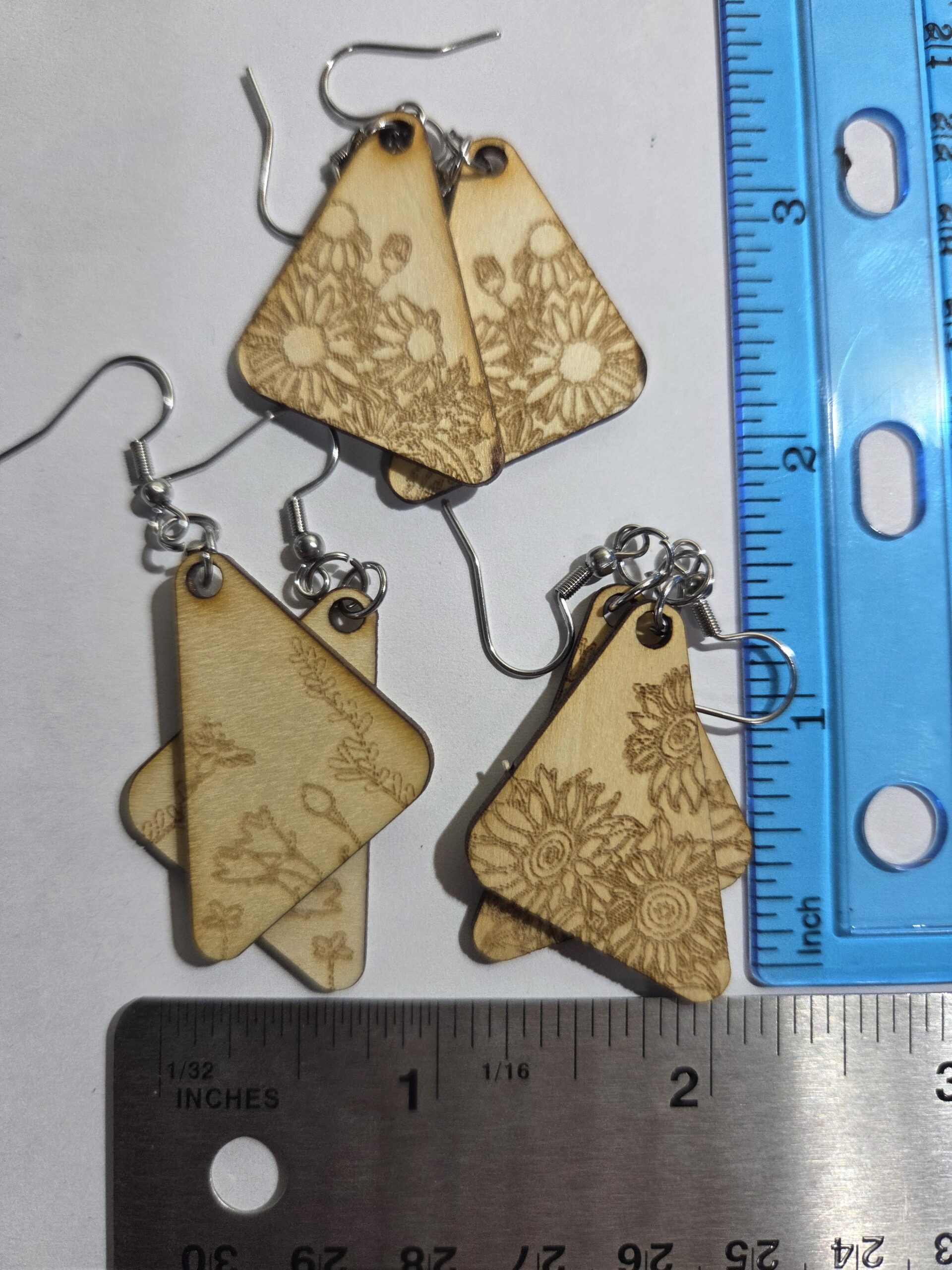 2 inch x 4 inch floral earring. You get 3 pair for the the price of one.
