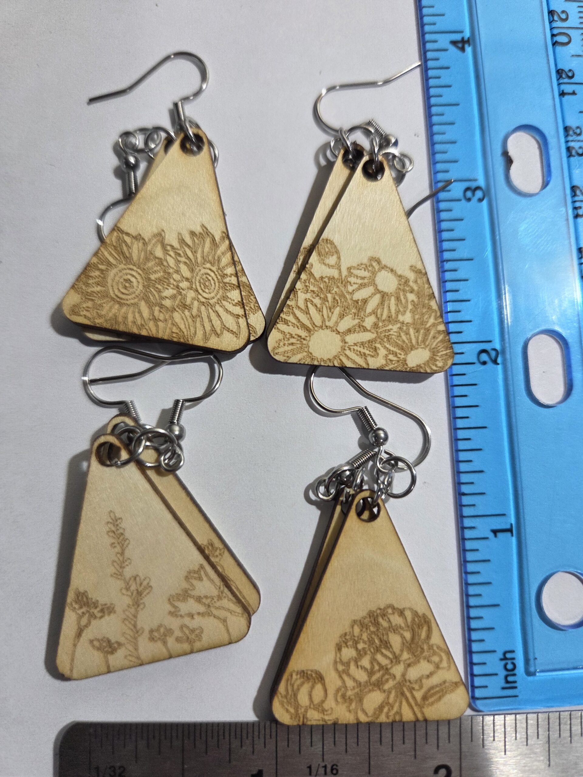 2 inch x 4 inch floral earring. You get 4 pair for the the price of one.
